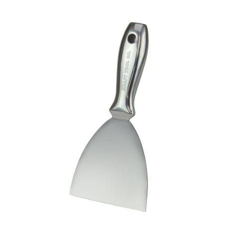 Light as a feather, but strong as an ox! Non-rust stainless steel blade and handle is made for strength and longevity. The polished 4" blade is ideal for scraping, painting and drywall applications. The end of the handle is flat and strong for nail setting. The rivet-free, contoured handle comfortable and easy to grasp. A hang hole allows for easy storage.